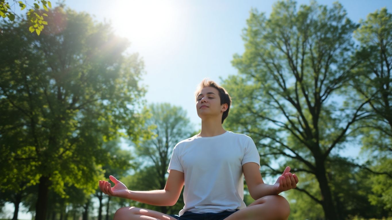 Person meditating peacefully in nature, bathed in sunlight.